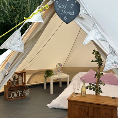 Firstly you'll need to reserve a set amount of bell tents that you would like for your wedding by paying a small reservation deposit. Our standard minimum hire amount is 5 tents